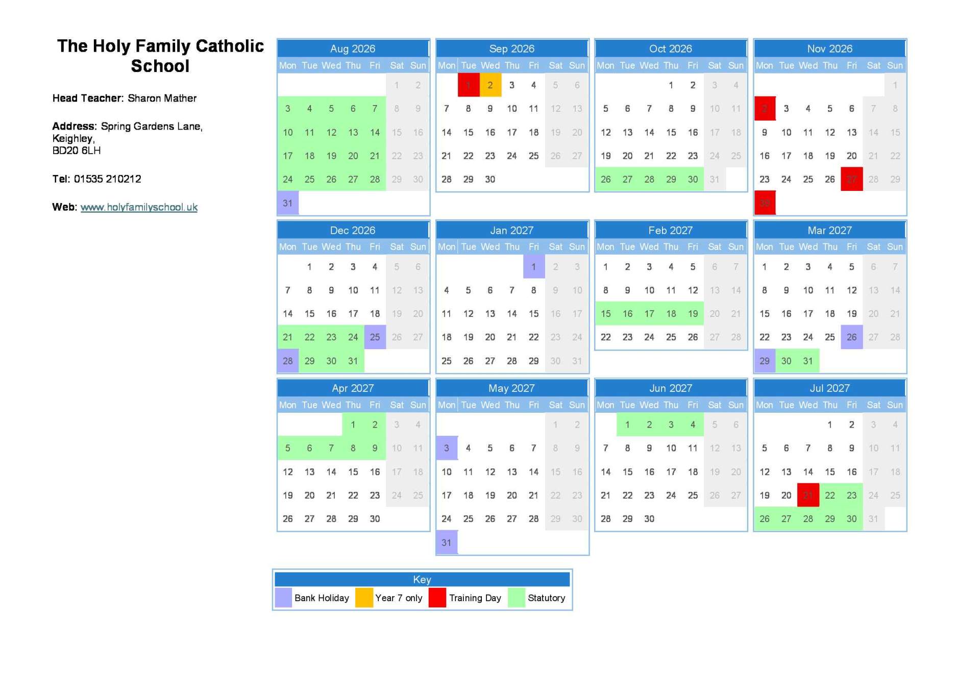 Holy Family Catholic School Term Dates 2025 to 2026