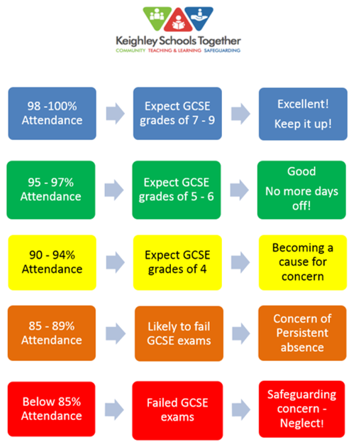 Excellent attendance is essential for the exceptional educational and social development of all children and young people. It is well recognised that good, consistent attendance at school is crucial to a student’s future prospects. Too many absences can result in insufficient coverage of the National Curriculum and students failing to achieve the expected grade. Missing school damages students attainment levels, disrupts school routines, effects the learning of others and can leave young people vulnerable to anti-social behaviour and crime.