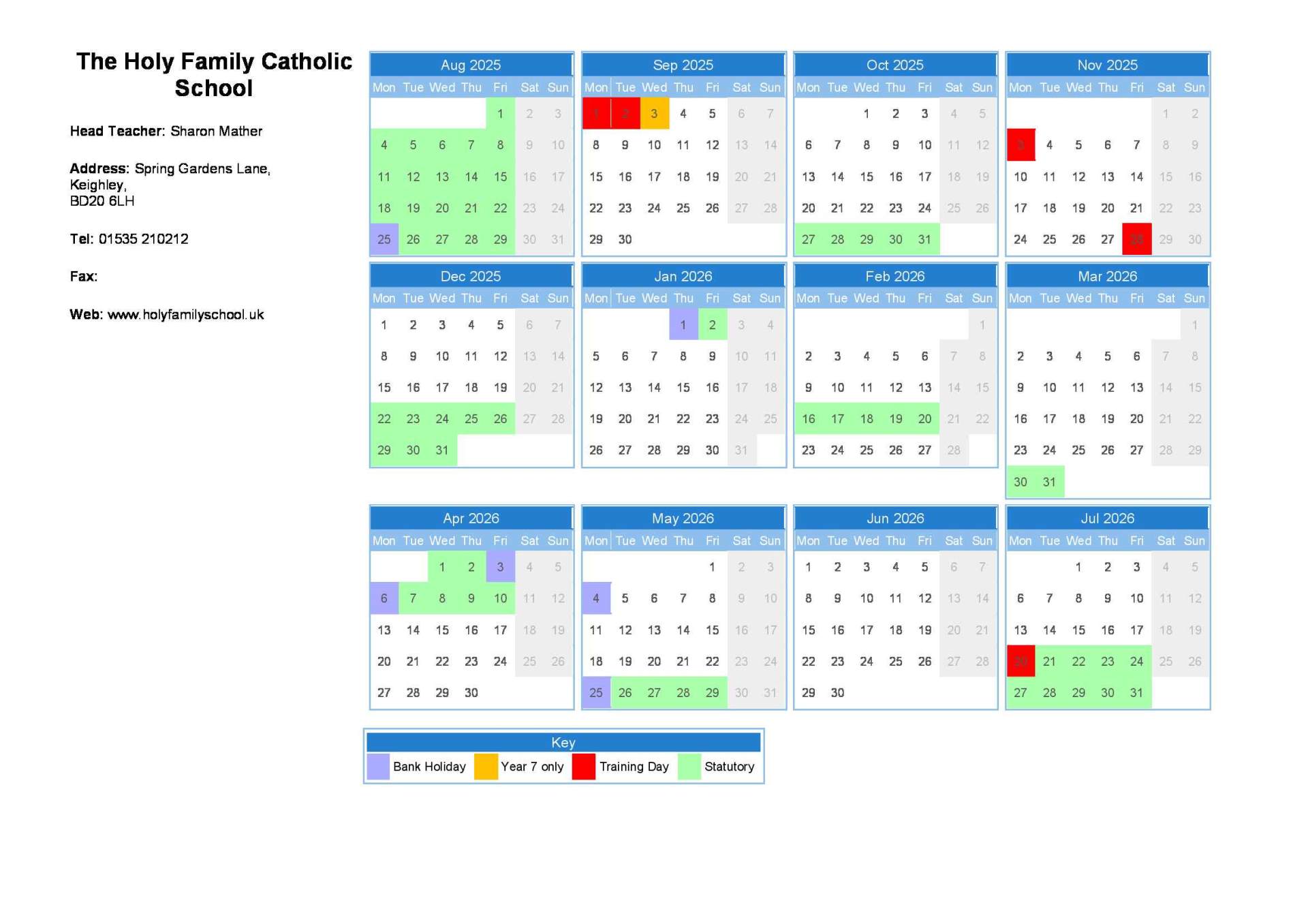 Holy Family Catholic School Term Dates 2025 to 2026